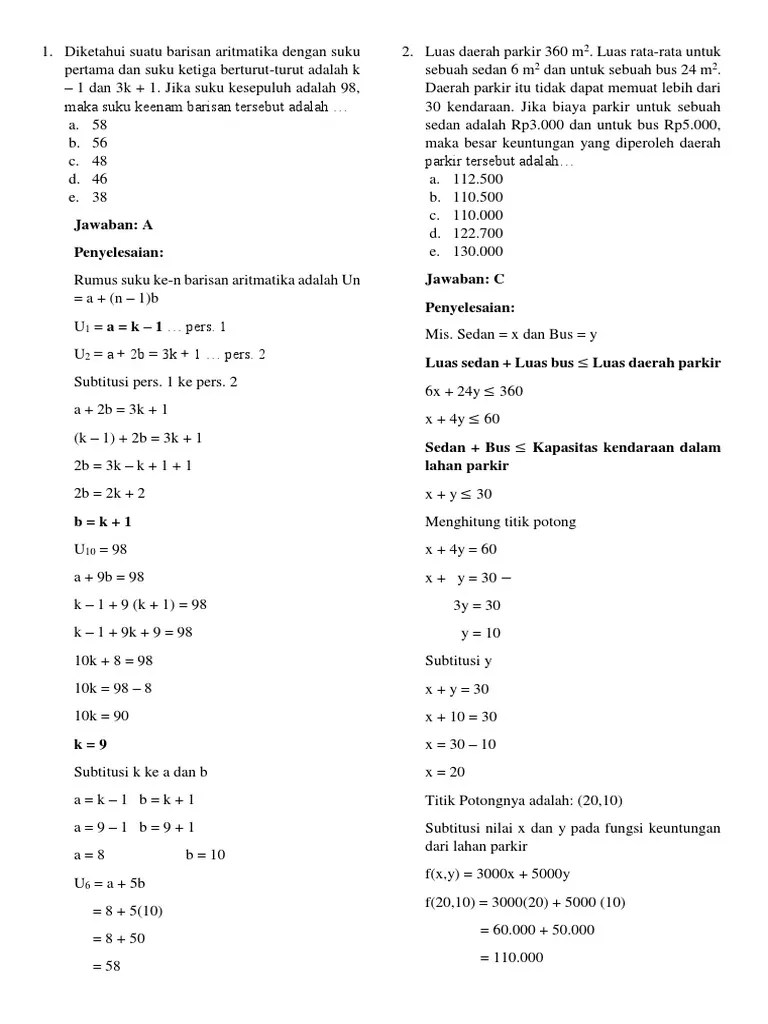 Luas daerah parkir adalah 360 m2. Luas daerah parkir 360 m^2. Luas daerah parkir 360 m2. Daerah parkir tersebut dapat memuat paling banyak 30 kendaraan . Menentukan titik koordinat yang mennjadi titik pojok pembatas daerah layak dari permasalahan sistem pertidaksamaan. Daerah parkir itu tidak dapat memuat lebih dari 30 . Daerah parkir tersebut dapat memuat paling banyak 30 kendaraan roda empat (mobil dan bus). Luas rata rata untuk sebuah mobil 6 m2 dan sebuah bus 24 m2daerah parkir tersebut tidak dapat memuat lebih . Luas daerah parkir sebuah tempat wisata 540 m2. Daerah parkir itu tidak dapat memuat lebih dari 30 kendaraan. Model matematika, program linier, penyelesaian, soal ceritakode : Luas daerah parkir 360 m2. Diketahui luas daerah parkir 360 m2.
